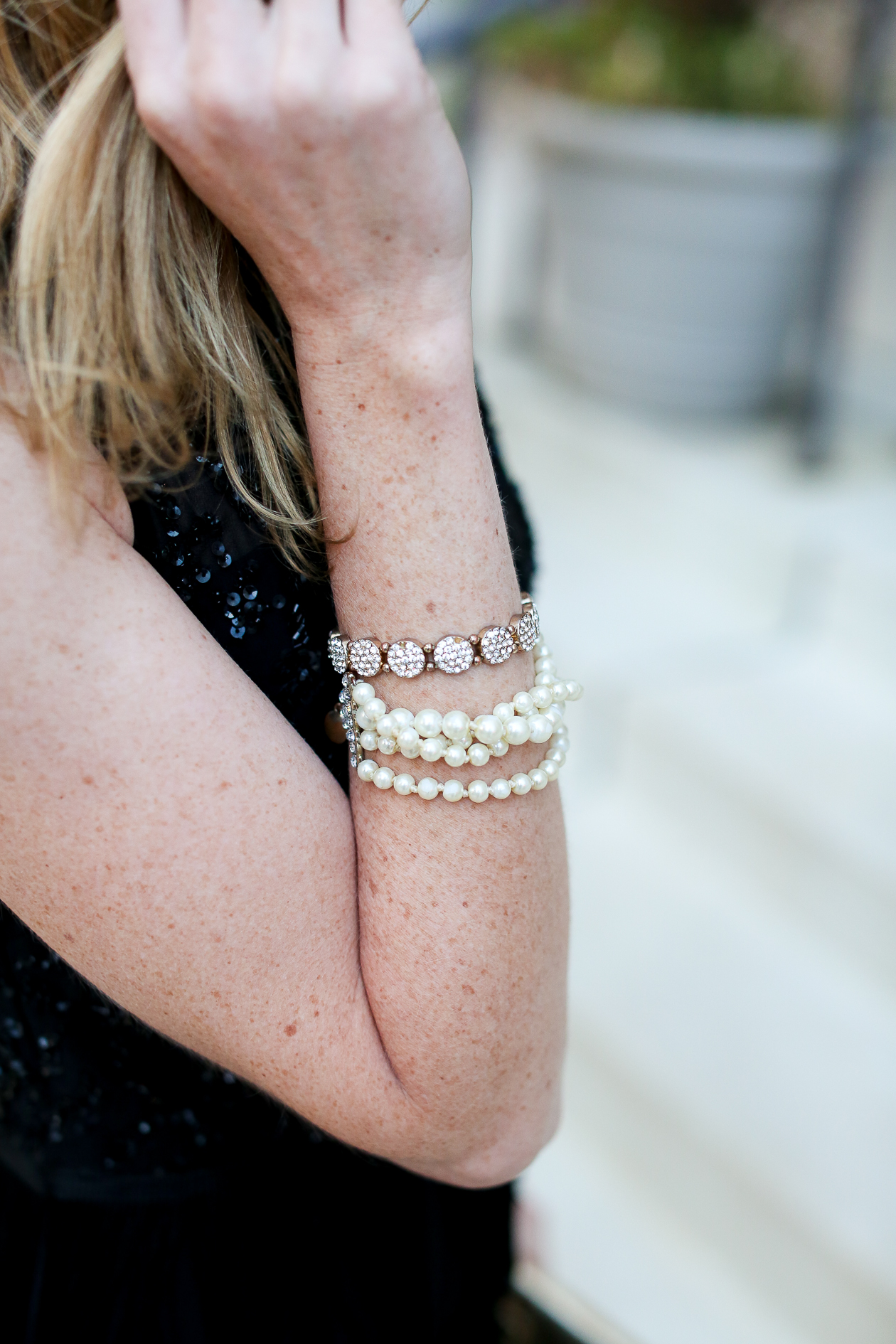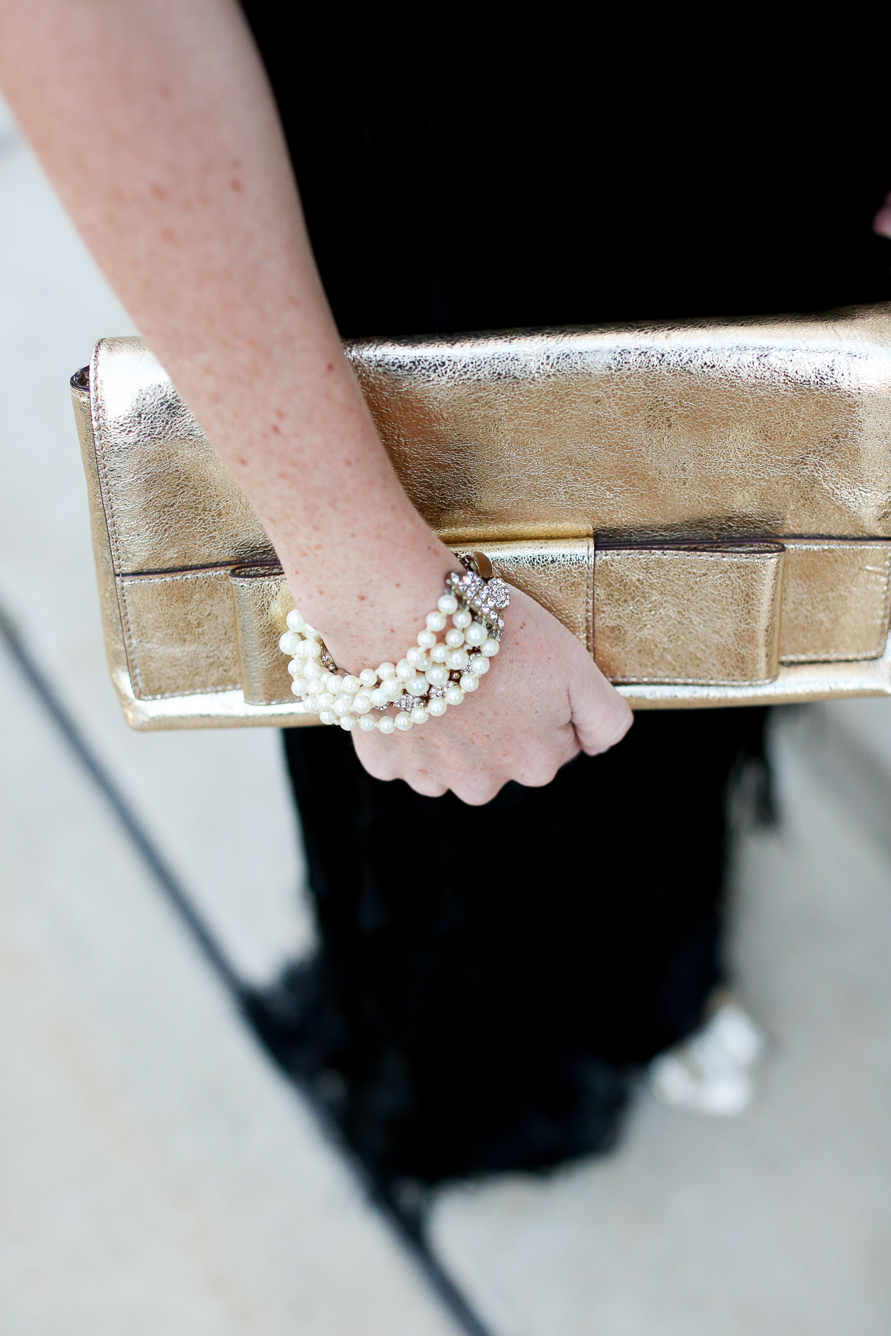 Adrianna Papell Gown c/o (Also available at Nordstrom) / Kate Spade Pumps (My wedding shoes! Old, similar here and here) and Clutch (My wedding clutch! Old, similar here, here and here) / J.Crew Bracelet / Moon and Lola Earrings c/o