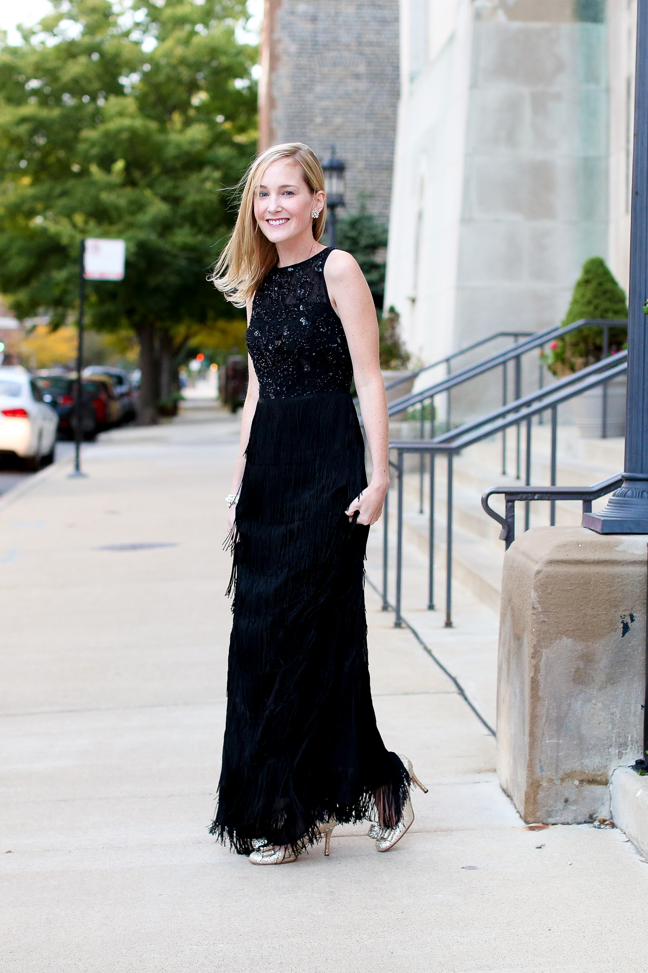 In other news, I’m currently taking over the Adrianna Papell Instagram account, and I’d love it if you followed along! I featured a gorgeous navy dress on the blog last week, and today, I’m featuring this ah-mah-zing black fringe gown. I thought I was 100-percent sold on wearing the navy number to the upcoming black tie wedding I have in November, but now I’m on the fence! The twirling opportunities with this one are just TOO GOOD.