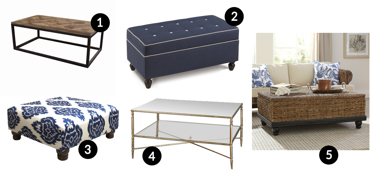 Anyway, Mitch and I have decided that we’re going to select a coffee table first, and then design the living room around it. Below are some of my favorites that I found on Wayfair, and I’d love your opinion! I’m pretty much smitten with this one for a few reasons: it’s made out of real wood; it’s sturdy enough that Mitch can put his feet up on it without breaking it; it reminds me of the gorgeous parquet flooring from this townhouse that Mitch and I lived in when we got married; it’s a fraction of the cost that other parquet coffee tables are currently going for; I’d like to incorporate an industrial-looking piece somewhere in the room; and it looks very much like the tables in this room, this room and this room from my original inspiration post!