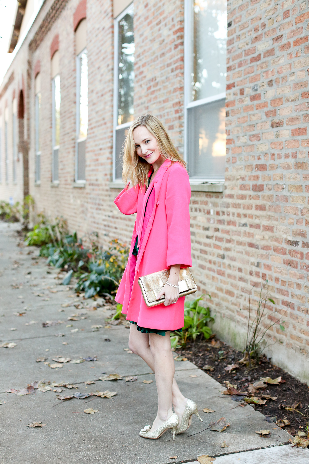 Leota Dress c/o / Moon & Lola Earrings c/o / Julie Brown Designs Bow Coat c/o / Kate Spade Pumps (My wedding shoes! Old, similar here and here) and Clutch (My wedding clutch! Old, similar here, here and here)