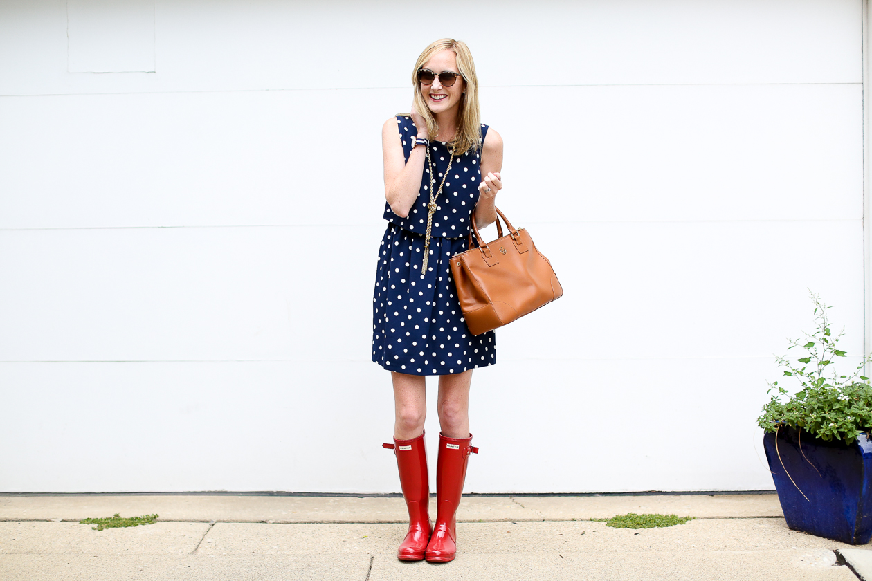 Hunter Boots (Other styles here. Have you read my “Guide to Buying Hunter Boots” post? / Maison Jules Dress c/o (Sold out, similar here! I also have this striped dress I wore in this post, and this “stamped” dress I wore in this post!) / Tory Burch Tote / Kate Spade Sunglasses (Old, similar here and here) / Benevolent Jewels Necklace c/o / Daniel Wellington Watch c/o / Moon and Lola Earrings c/o Tuckernuck (Also love these and these!)