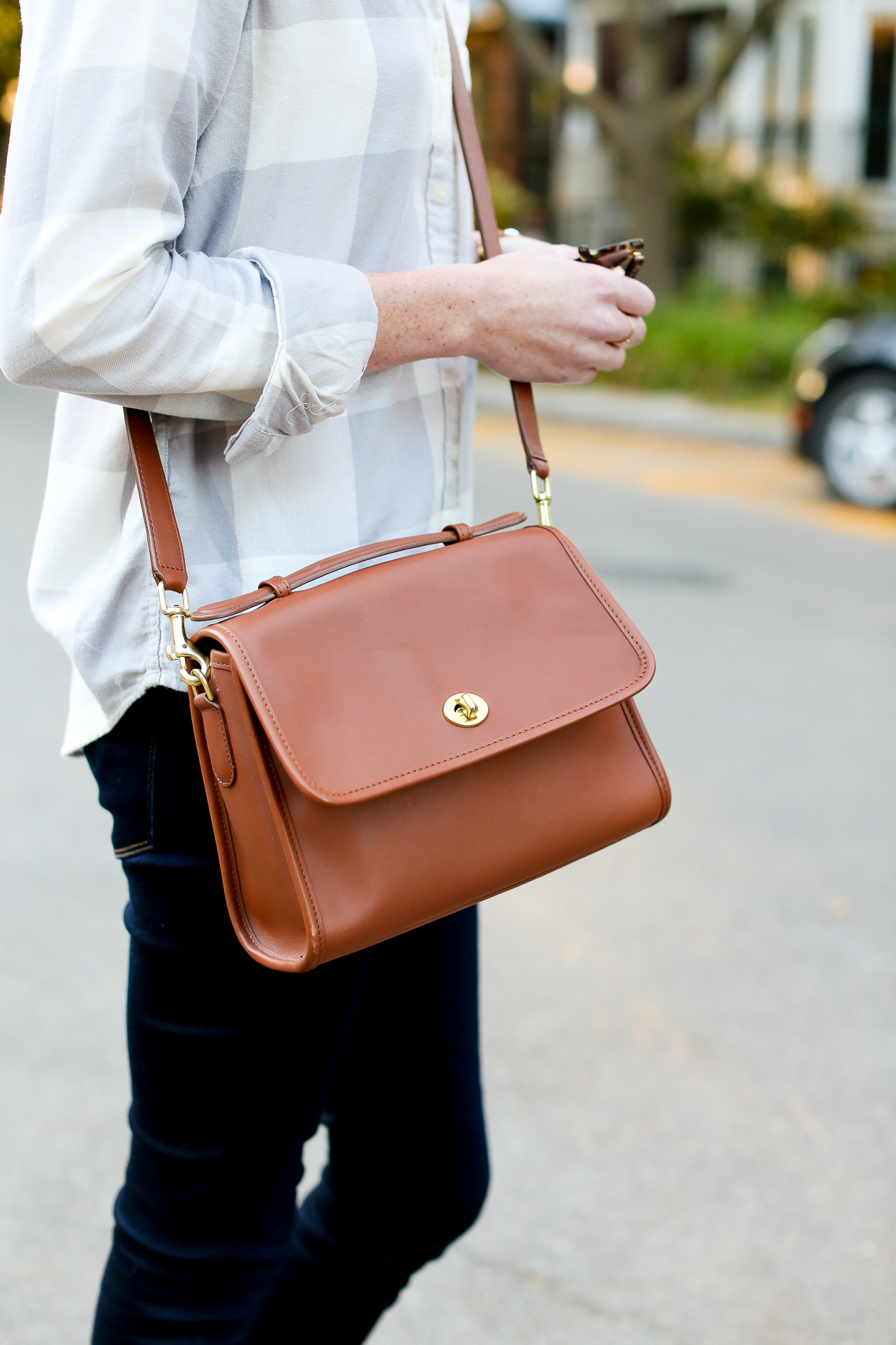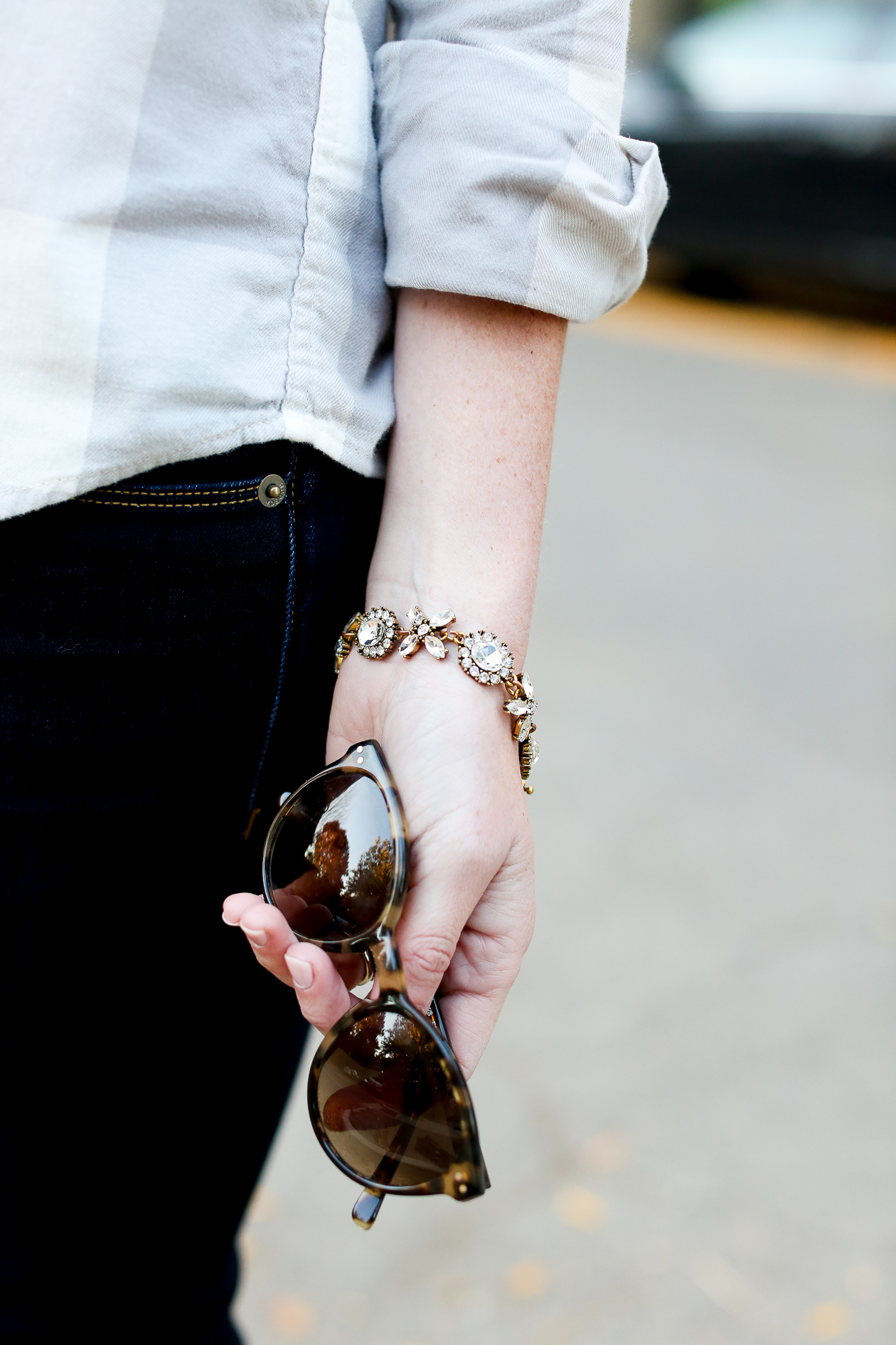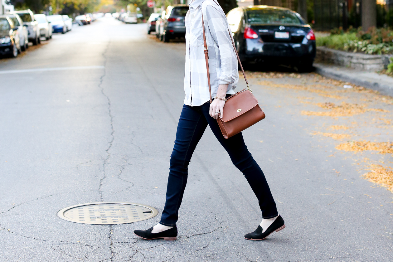 Uniqlo Plaid Button-Down c/o (Also picked up this one, and I can’t get enough!) / Sebago Flats c/o / Hudson Jeans c/o Zappos / Coach Bag (Temporarily discontinued but apparently coming back soon!) / Helen Ficalora Necklace c/o / J.Crew Bracelet (Old, similar here) / Kendra Scott Earrings c/o / Kate Spade Sunglasses (Old, similar here and here)